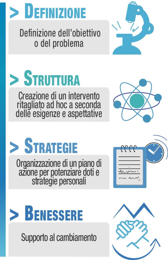 Il coaching è una metodologia di sviluppo personale finalizzata a fornire strumenti utili ed efficaci per facilitare i cambiamenti, la crescita individuale e la realizzazione personale.